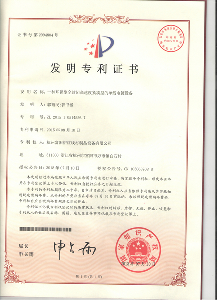 - 發明專利證書
